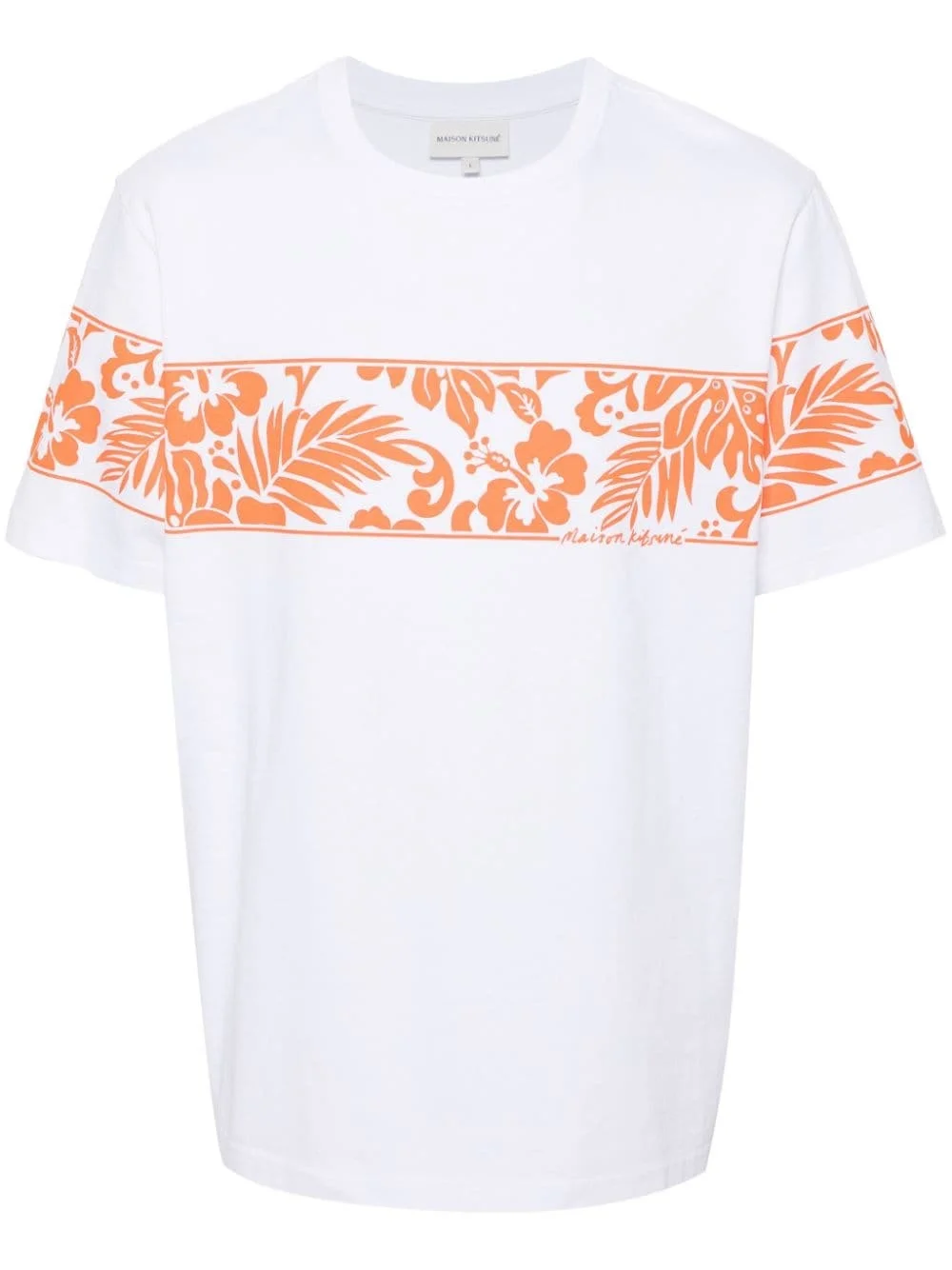 floral-print cotton T-shirt Highlights - White - Cotton - Lightweight jersey - Floral print - Logo print to the front - Crew neck - Short sleeves - Straight hem Imported Composition Cotton 100% SIZE & FIT Model measurements Height 6 ft 2 in(1.88 m) Bust/Chest 36.61 in(93 cm) Hips 36.61 in(93 cm) Waist 29.92 in(76 cm) FittingInformation Designed for a relaxed fit, this piece allows for comfort and movement when worn Made from a midweight non-stretch fabric, this piece offers minimal elasticity when worn This piece fits true to size – take your usual size