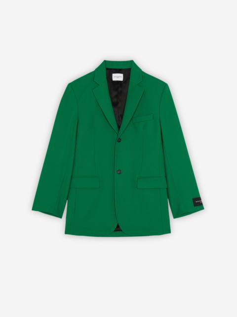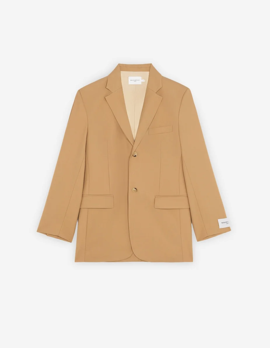DETAILS Wool grain de poudre jacket. Classic cut with two buttons. - Wool grain de poudre jacket - Straight cut - Two-button closure - Patch waist pockets - Slash breast pocket - Two-button cuffs - “Maison Kitsune” label at cuff JM02149WT0020-P220 SIZE & CUT Cut: OVERSIZE Sizing: MEN MATERIAL Main Material: 55% POLYESTER, 45% VIRGIN WOOL, Lining: 100% VISCOSE TRACEABILITY Made in Romania