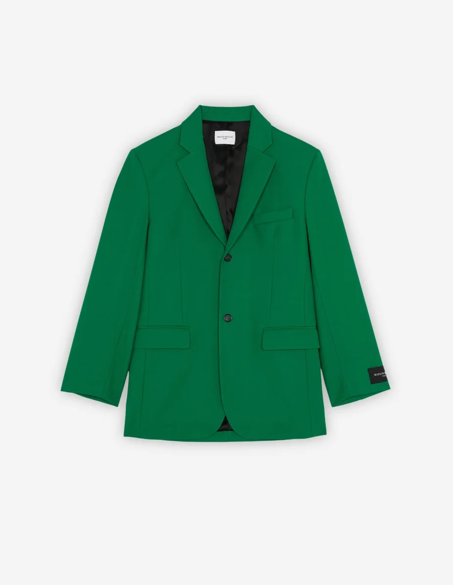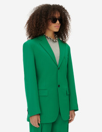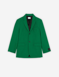 DETAILS Wool grain de poudre jacket. Classic cut with two buttons. - Wool grain de poudre jacket - Straight cut - Two-button closure - Patch waist pockets - Slash breast pocket - Two-button cuffs - “Maison Kitsune” label at cuff JM02149WT0020-P370 SIZE & CUT Cut: OVERSIZE Sizing: MEN MATERIAL Main Material: 55% POLYESTER, 45% VIRGIN WOOL, Lining: 100% VISCOSE TRACEABILITY Made in Romania