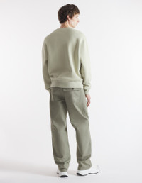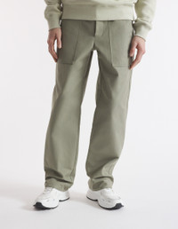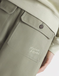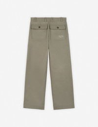 DETAILS Cotton canvas workwear pants. Straight fit with "Maison Kitsune Handwriting" signature embroidered on the back pocket. - Plain cotton canvas workwear pants - Straight fit - Belt loops at the waistband - Button closure with hidden zipper - Two slash side pockets with topstitching - Two patch back pockets with button flaps - Embroidered "Maison Kitsune Handwriting" signature on the back pocket NM01105WW0117-P131 SIZE & CUT Cut: STRAIGHT Sizing: MEN The male model is 6 and is wearing size 40 MATERIAL Main Material: 100% COTTON, Pocket lining: 100% COTTON TRACEABILITY Made in Romania