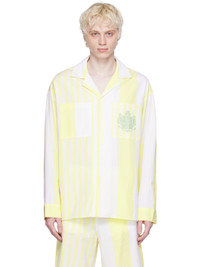 Cotton seersucker shirt. Stripes throughout. · Open spread collar · Button closure · Patch pockets · Printed logo graphic at chest · Shirttail hem · Adjustable two-button barrel cuffs · Tonal hardware Part of the Sweet Souvenirs collection within the Maison Kitsune x Hotel Olympia collaboration. Supplier color: Lemon 100% cotton. Made in Portugal 232389M192002