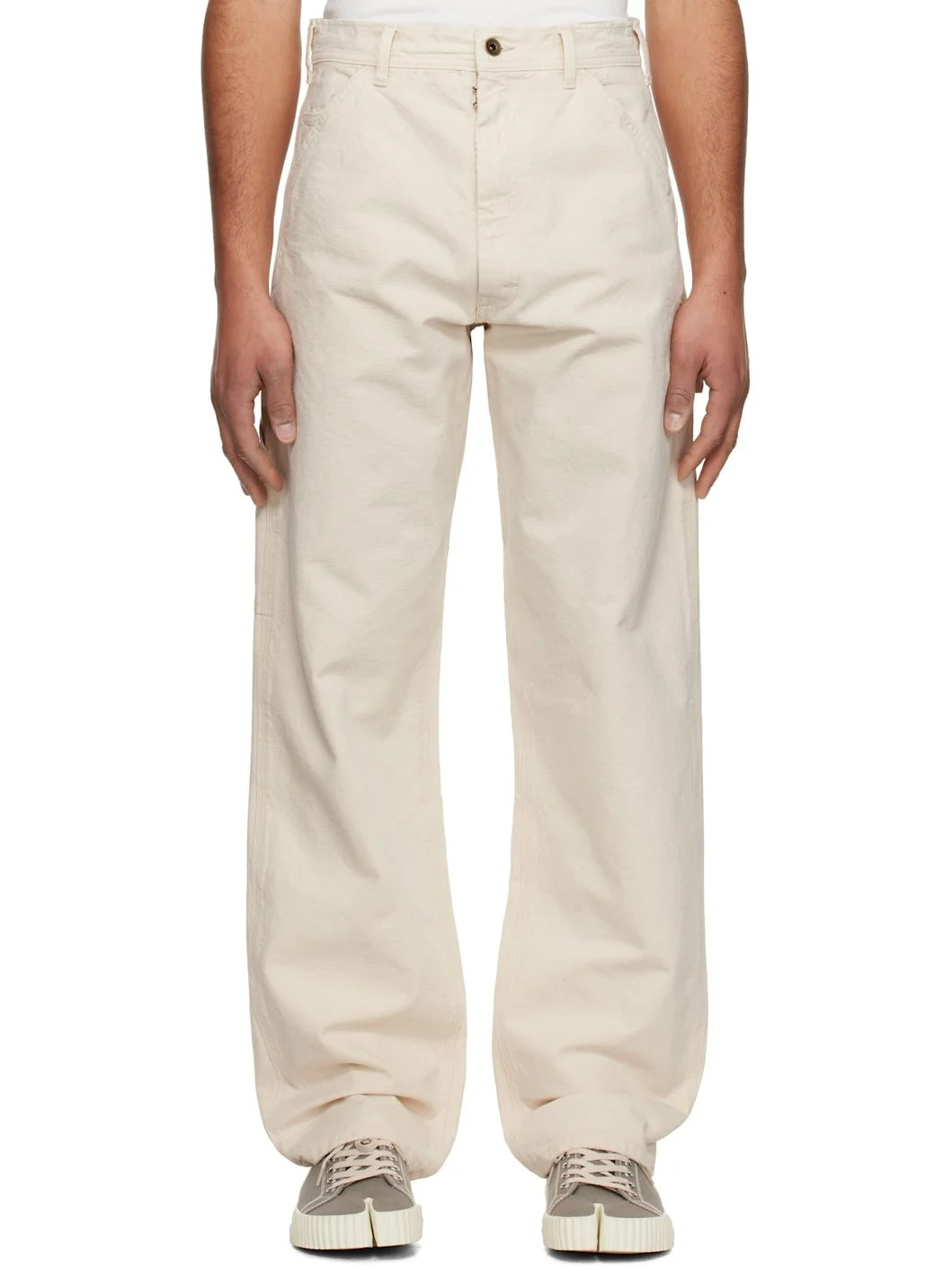 Loose-fit non-stretch denim jeans. · Mid-rise · Belt loops · Five-pocket styling · Zip fly · Hammer loop and patch pocket at outseam · Patch pockets at outseam · White stitching at back waist Supplier color: Ecru Body: 100% cotton. Lining: 65% polyester, 35% cotton. Made in Italy 251168M188000