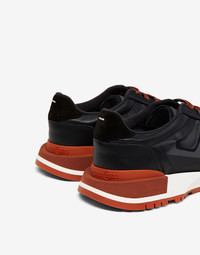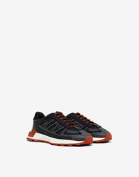 Item details 100% Polyamide, Bovine leather, Polyurethane Leather Techno fabric Brand logo Multicolor Pattern Laces Flat Round toeline Leather backing Rubber sole Contains non-textile parts of animal origin