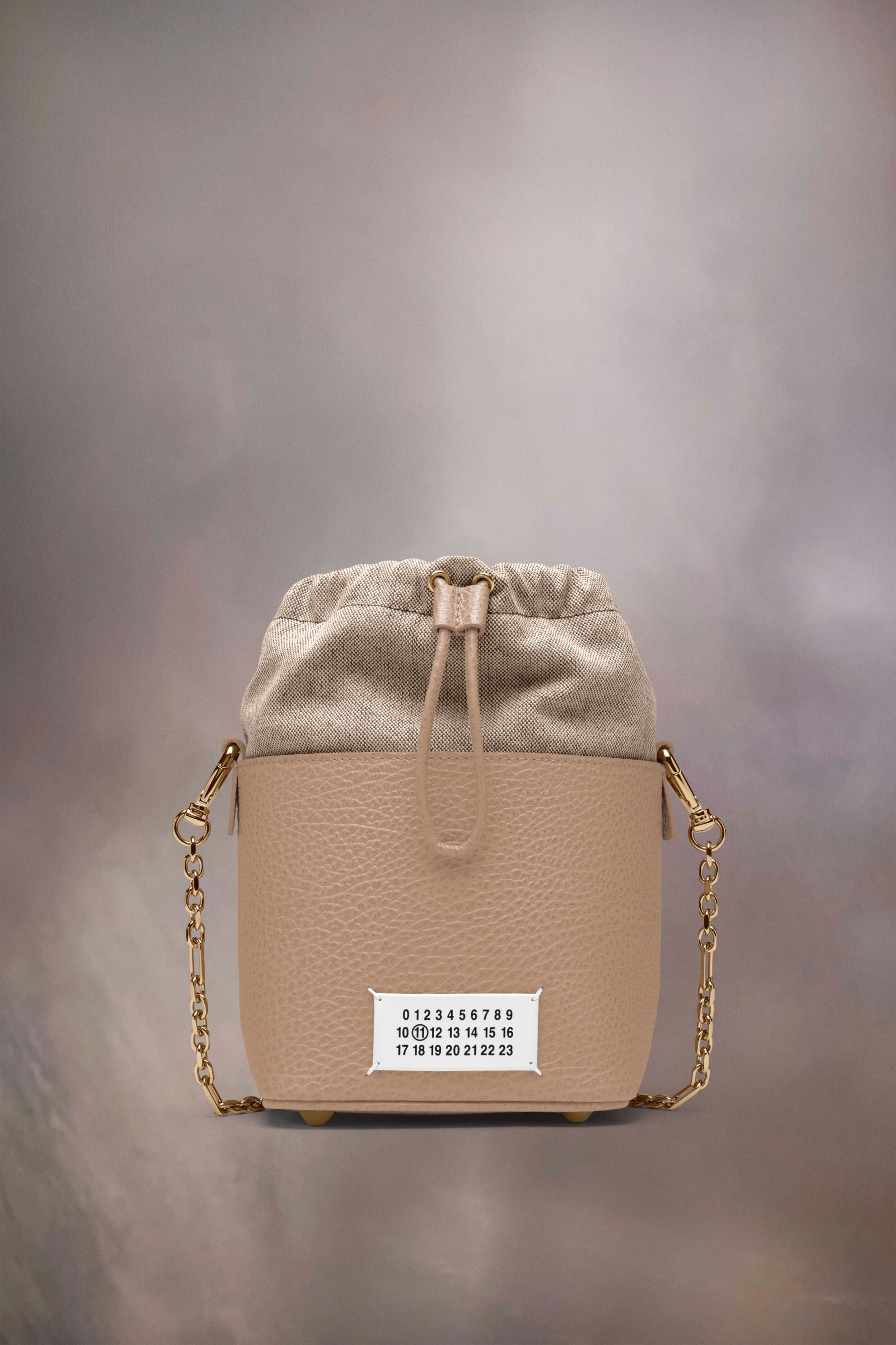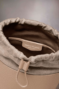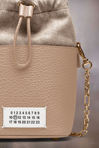 The 5AC bucket small, crafted from grainy leather, features a top handle and a chain shoulder strap. It is accented with the logo label at the front. The iconic 5AC line takes its name from the French word 'sac' (bag). It explores the Maison's Anonymity of the lining concept. The bag's metal rivets are covered in leather by hand, with the metal visible only where needed, for a clean aspect. Artisanal details include the bag's exposed edges hand-painted in tone with the leather. Product Details Item ID S61WG0035P4348T2070 Outer: Grainy calf leather with soft touch Lining: Cotton Detachable and adjustable chain and leather shoulder strap Removable handle Logo label at the front Drawstring closure Internal Four stitches Internal logo stamping Internal flat pocket Metal feet Clean with a specific leather cleaner product and a damp microfiber cloth Made in Italy 14 cm x 12 cm x 15 cm/5,5 in x 5 in x 6 in (Height x Width x Length) Height refers to the closed bag with lining and label inside Handle drop: 9 cm/3,5 in Max. shoulder strap drop: 60 cm/23,6 in Min. shoulder strap drop: 52 cm/20,4 in A digital certificate provided by the Aura Blockchain Consortium guarantees the authenticity of this product. Discover more on auraluxuryblockchain.com/#about
