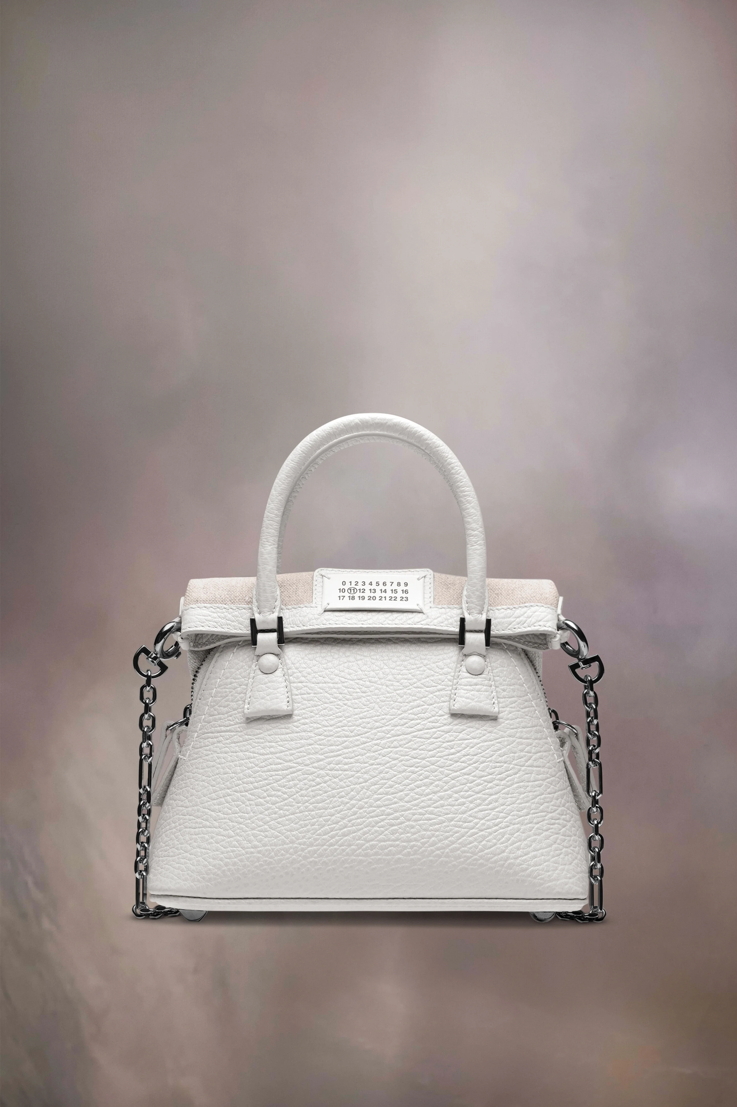 The 5AC classique micro, crafted from grainy leather, features top handles and a chain shoulder strap. It is accented with the logo label at the front. The iconic 5AC line takes its name from the French word 'sac' (bag). It explores the Maison's Anonymity of the lining concept. The bag's metal rivets are covered in leather by hand, with the metal visible only where needed, for a clean aspect. Artisanal details include the bag's exposed edges hand-painted in tone with the leather. Product Details Item ID S56WG0081P4455H9677 Outer: Grainy calf leather with soft touch Lining: Cotton Polished metal hardware Detachable and adjustable chain shoulder strap Logo label at the front Button closure to fold the head of the bag inside Inside flat pocket Inside Four stitches Inside logo stamping Metal feet Clean with a specific leather cleaner product and a damp microfiber cloth Made in Italy 15 cm x 10 cm x 22 cm/6 in x 4 in x 8,5 (Height x Width x Length) Height refers to the closed bag with lining and label inside Handle drop: 7 cm/2,7 in Max. shoulder strap drop: 55 cm/21,6 in Min. shoulder strap drop: 48 cm/18,8 in A digital certificate provided by the Aura Blockchain Consortium guarantees the authenticity of this product. Discover more on auraluxuryblockchain.com/#about