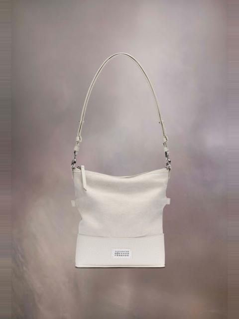 The 5AC hobo small, crafted from grainy leather, is accented with the logo label. The iconic 5AC line takes its name from the French word 'sac' (bag). It explores the Maison's Anonymity of the lining concept. The bag's metal rivets are covered in leather by hand, with the metal visible only where needed, for a clean aspect. Artisanal details include the bag's exposed edges hand-painted in tone with the leather. Product Details Item ID SB1WG0042P4348H9677 Body: 79% cotton, 15% polyester, 6% other fibers Contrast: Body: 100% calf leather Lining: 100% cotton Metallic hardware Multifunctional hobo bag in grainy leather and cotton Detachable and adjustable shoulder strap The shoulder strap can be attached in multiple ways Zip closure Logo label at the front Four stitches at the back Inside logo stamping Inside flat pocket Clean with a specific leather cleaner product and a damp microfiber cloth Made in Italy 26 cm x 5,5 cm x 25 cm/10,2 in x 2 in x 9,8 in (Height x Width x Length) Max. shoulder strap drop: 39 cm/15,3 in Min. shoulder strap drop: 29 cm/11,4 in A digital certificate provided by the Aura Blockchain Consortium guarantees the authenticity of this product. Discover more on auraluxuryblockchain.com/#about