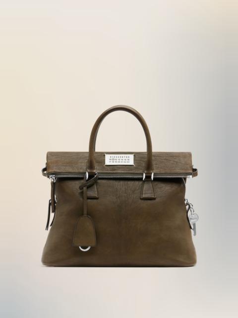 The 5AC Loved to Death medium, crafted from a soft washed leather, features a softened structure, a removable shoulder strap and a top handle. Its surface is washed, waxed, and hand-finished, resulting in a rich finish that evokes the traces of time. The iconic 5AC line takes its name from the French word 'sac' (bag). It explores the Maison's Anonymity of the lining concept. The bag is finished with the Maison's numeric artwork and signature four stitches, referencing its emblematic codes. Product Details Item ID SB1WG0074P8565T2180 Body: 100% Calf Leather Application: 100% Calf Leather Lining: 100% Cotton Inside: 100% Calf Leather Metallic hardware Top-handle bag in soft calf leather Folded top flap and zip closure Leather clochette Removable and adjustable shoulder strap Numeric signature label at the front Four stitches at the back Made in Italy