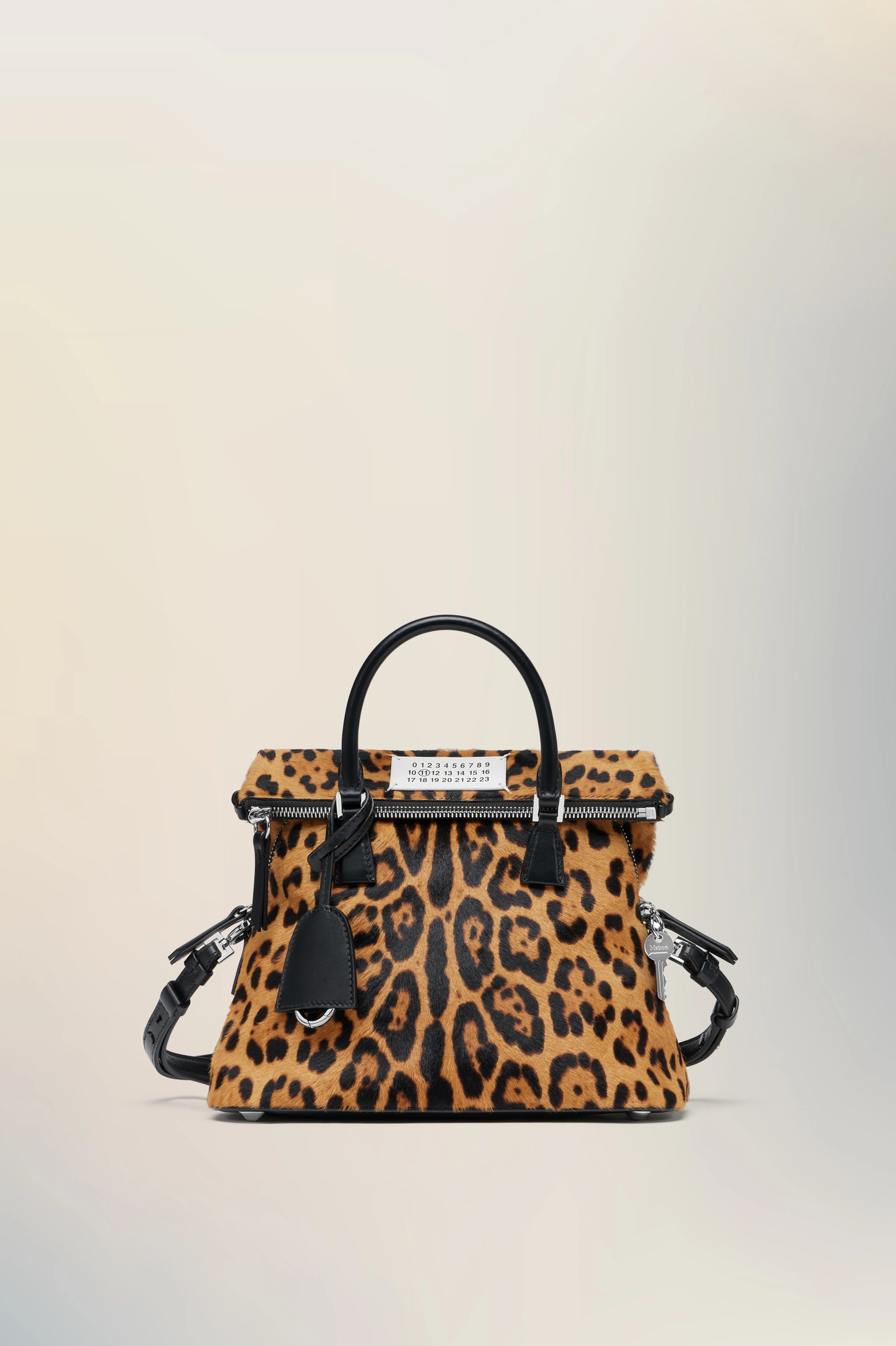 Compact in form and bold in texture, the 5AC mini is crafted in expressive leopard-print and black leather. The iconic 5AC line takes its name from the French word 'sac' (bag). It explores the Maison's Anonymity of the Lining concept. Accented with the Maison's numeric artwork and four stitches – the opposite of a label. Product Details Item ID SB1WG0075P8316HA923 Body: 100% Calf Hair Contrast: 100% Calf Leather Application: 100% Calf Leather Lining: 100% Polyester Inside: 100% Calf Leather Metallic hardware Handbag in calf leather Top zip fastening Numeric signature label at the front Internal pocket Leather clochette Four stitches at the back Made in Italy