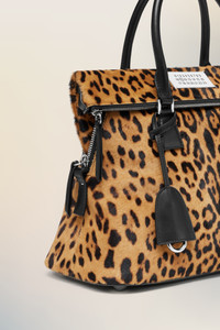 The 5AC medium fuses precision with provocation in bold leopard-print. Black leather trim frames the silhouette, grounding the tactile finish with structured contrast. The iconic 5AC line takes its name from the French word 'sac' (bag). It explores the Maison's Anonymity of the Lining concept. Accented with the Maison's numeric artwork and four stitches – the opposite of a label. Product Details Item ID SB1WG0074P8316HA923 Body: 100% Calf Hair Contrast: 100% Calf Leather Application: 100% Calf Leather Lining: 100% Polyester Inside: 100% Calf Leather Metallic harware Shoulder bag in printed calf hair Adjustable leather strap with metal hardware Top zip fastening Numeric signature label at the front Internal flat pocket Leather clochette Four stitches at the back Made in Italy