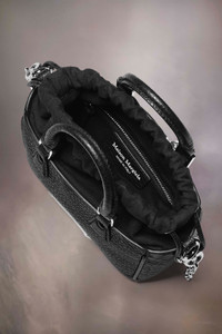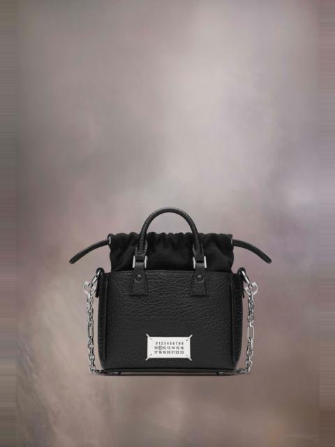 The 5AC tote horizontal, crafted from grainy leather, is accented with the logo label. The iconic 5AC line takes its name from the French word 'sac' (bag). It explores the Maison's Anonymity of the lining concept. The bag's metal rivets are covered in leather by hand, with the metal visible only where needed, for a clean aspect. Artisanal details include the bag's exposed edges hand-painted in tone with the leather. Product Details Item ID SB1WG0046P4348T8013 Body: 100% calf leather Lining: 100% cotton Metallic hardware Mini bag in grainy leather Detachable and adjustable chain and leather shoulder strap Drawstring closure Logo label at the front Four stitches at the back Inside logo stamping Inside zip pocket Metal feet Clean with a specific leather cleaner product and a damp microfiber cloth Made in Italy 12 cm x 7 cm x 16 cm/4,7 in x 2,7 in x 6,3 in (Height x Width x Length) Handle drop: 4 cm/1,5 in Max. shoulder strap drop: 61 cm/24 in Min. shoulder strap drop: 54 cm/21,2 in A digital certificate provided by the Aura Blockchain Consortium guarantees the authenticity of this product. Discover more on auraluxuryblockchain.com/#about