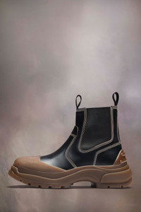 The Alex ankle boots with a chunky contrast sole, utilitarian pull tabs and rubber toe cap are crafted from matte calf leather. Elastic sides finish the look for ease of wear. At the back, the single white stitch shows the hand of Maison Margiela. Product Details Item ID S57WU0262P3744H9424
