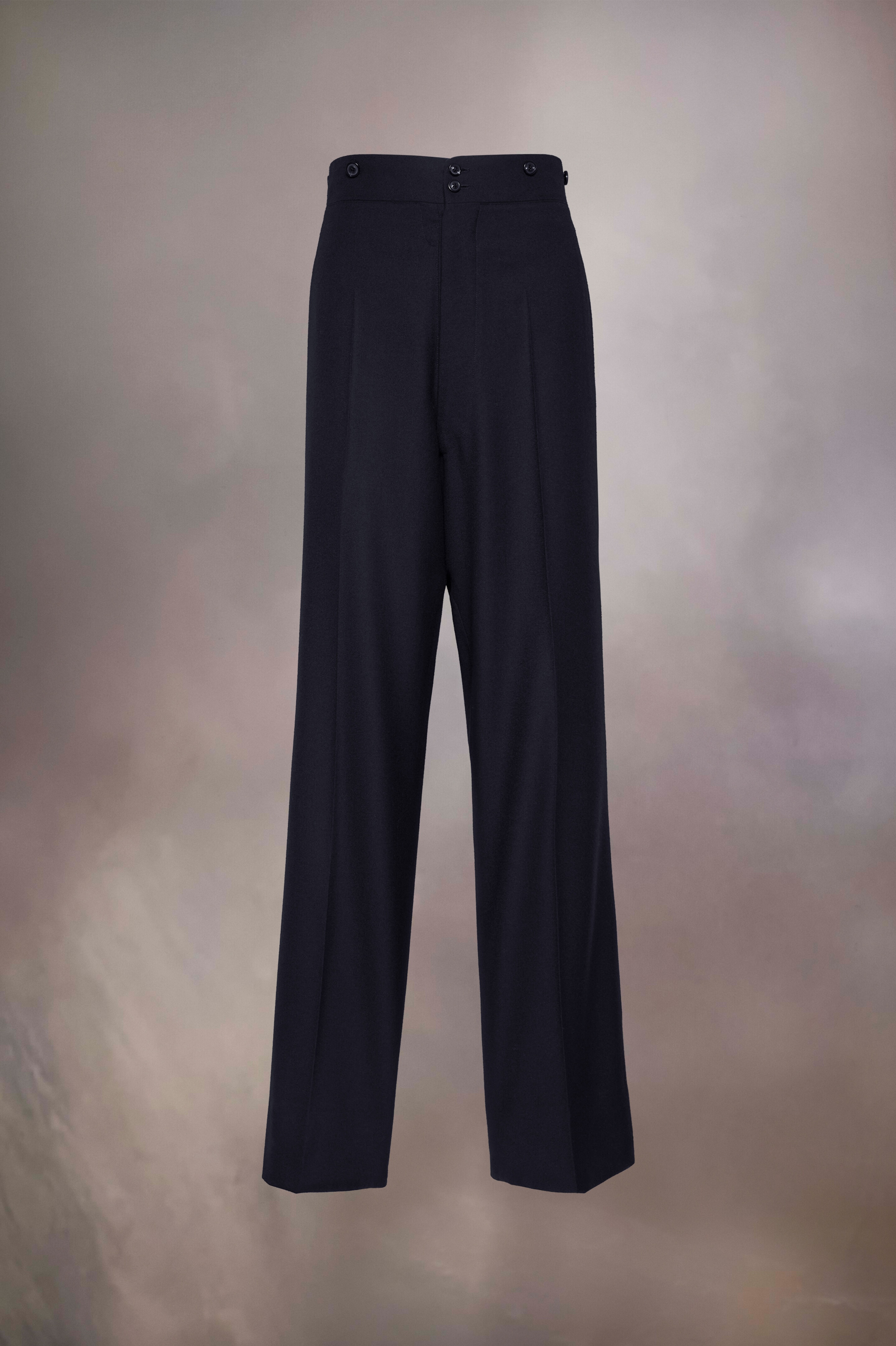 The wide-leg trousers are crafted from barathea wool with pleats and the Margiela hook closure. The waist features buttons to close as well as additional buttons and a buckled back for an adjustable fit. Maison Margiela's signature, the Four stitches, appear at the back; the opposite of a label. Product Details Item ID S50KA0654M35203524 Composition: 100% wool Lining: 80% cotton, 20% polyester Pocket lining: 100% cotton Wool barathea trousers Wide leg Front pleats Horn button closure Maison Margiela hook Side pockets Adjustable at the back Four stitches at the back Made in Italy Model is 6'2" tall and wears a size 46.