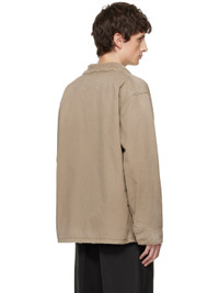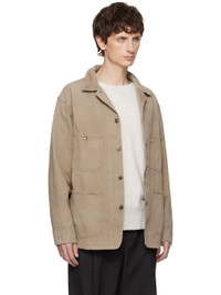Cotton herringbone jacket. · Fading and subtle distressing throughout · Corduroy spread collar · Button closure · Patch pockets at front · Barrel cuffs · White stitching at back · Twill lining Supplier color: Stone washed beige Body: 100% cotton. Lining: 65% polyester, 35% cotton. Made in Italy 252168M180001