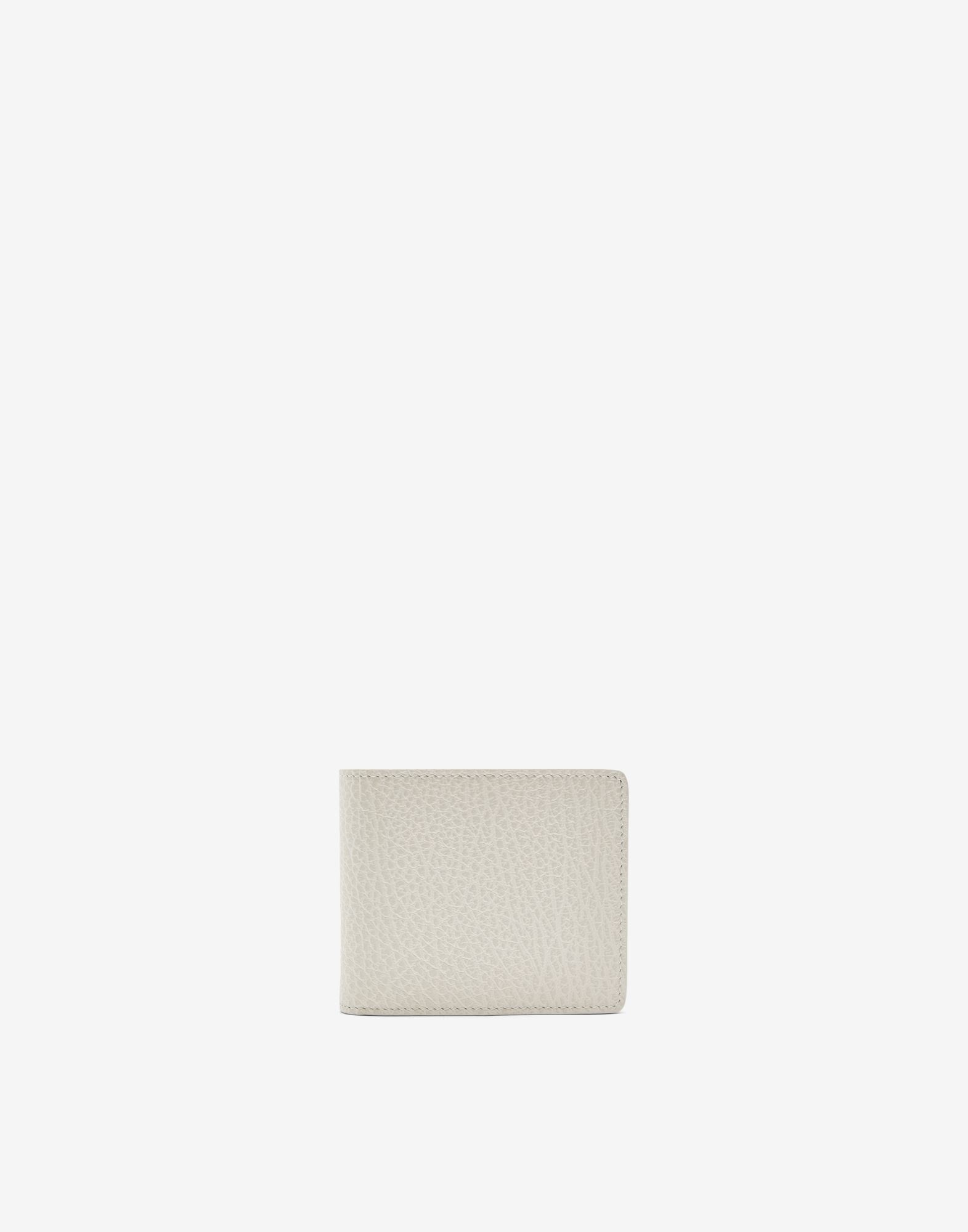 Bi-fold wallet in grained calfskin with eight card slots, two bi-fold compartments and the numerical logo and four-stitches moniker. Made in Italy. Item details 100% Bovine leather Width: 4.3 inches Height: 3.5 inches Textured leather Brand logo Solid color Card slots Internal compartments