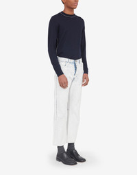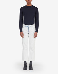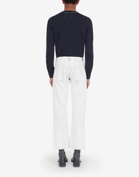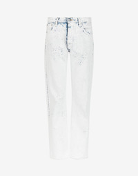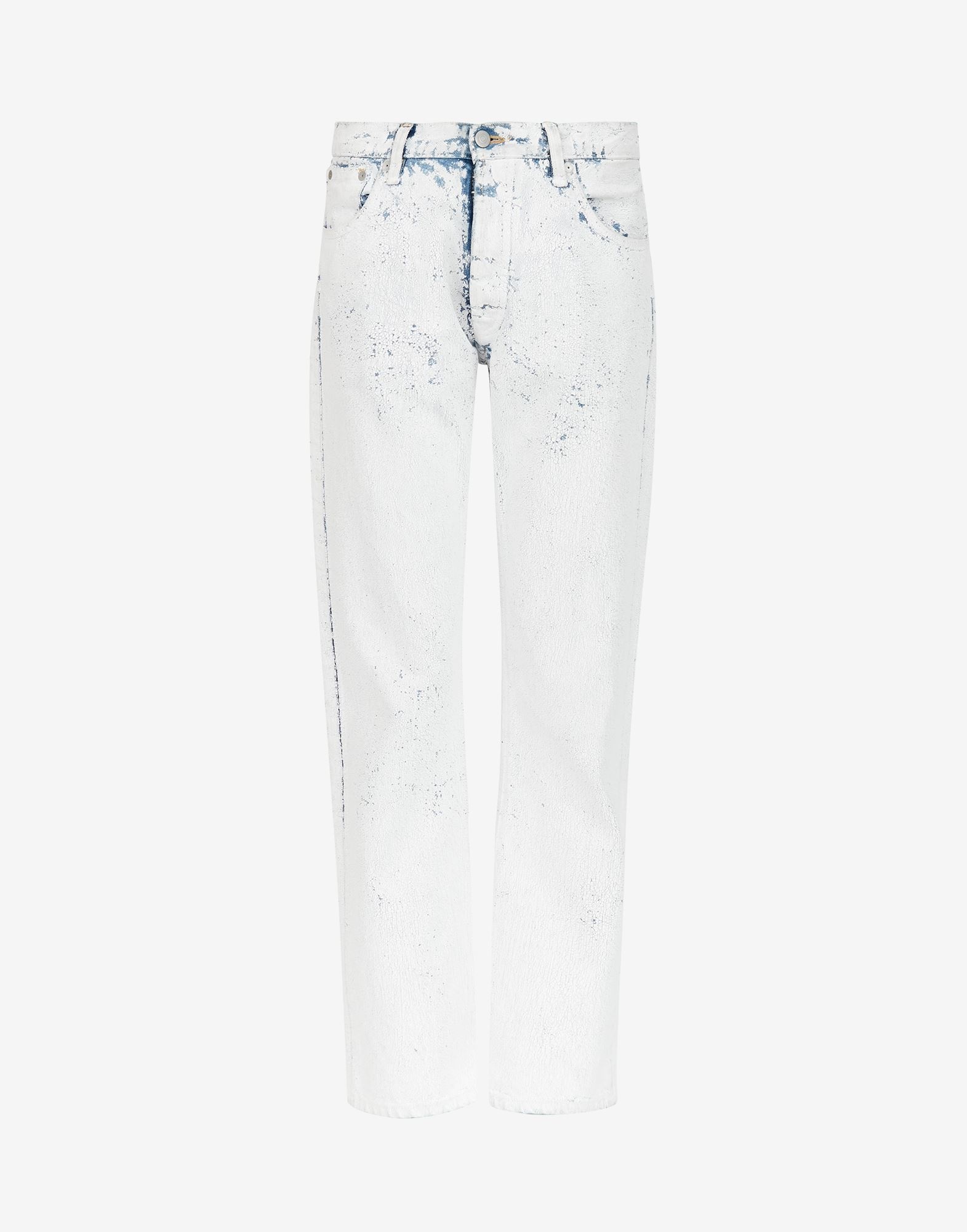 Five-pocket straight-leg boyfriend jeans with the Margiela hook and eye closure and Bianchetto treatment – Bianchetto is a handmade technique and the crackle effect paint may come off with use. It is an intentional design feature that the product evolves and is altered by it. The Maison's four-stitches moniker adorns the back. Made in Italy. Item details 100% Cotton Denim Coated effect Mid Rise Button closing Five pockets