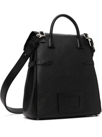 Structured goatskin and calfskin messenger bag. · Carry handle · Adjustable and detachable crossbody strap · Adjustable tab at sides · Card slot and ID slot at back face · Bumper studs at base · Flap with logo patch and zip closure · Zip pocket at interior · Microsuede lining · H12.5" x W10" x D5" Supplier color: Black Goatskin, calfskin. Made in Italy 252168M166000