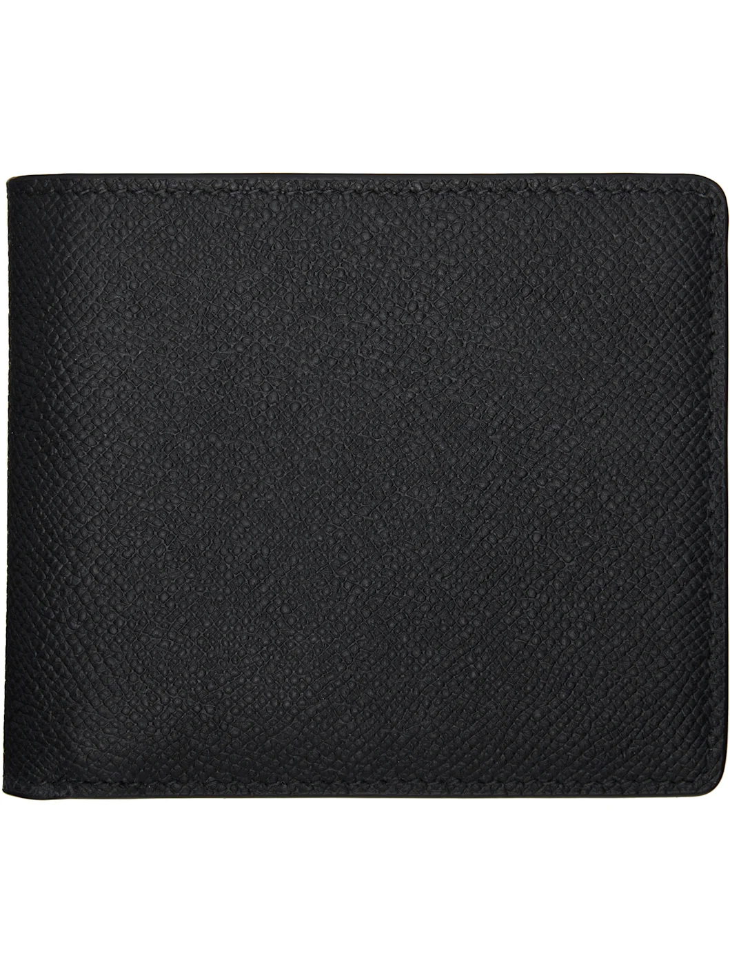 Saffiano calfskin bifold wallet. · Signature white stitches at back face · Two note slots · Eight card slots · Two patch pockets · Buffed calfskin interior · Moire lining · H3.75" x W4.25" x D0.75" Supplier color: Black Body: 100% calfskin. Lining: 100% viscose. Made in Italy 261168M164018