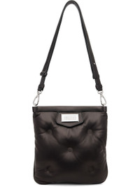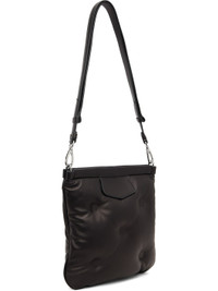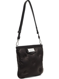 Padded buffed calfskin messenger bag. · Adjustable and detachable shoulder strap · Logo patch at face · Magnetic closure · Zip pocket at interior · Taffeta lining · H10" x W9.5" x D1.75" Supplier color: Black Calfskin. Made in Italy 261168M170013