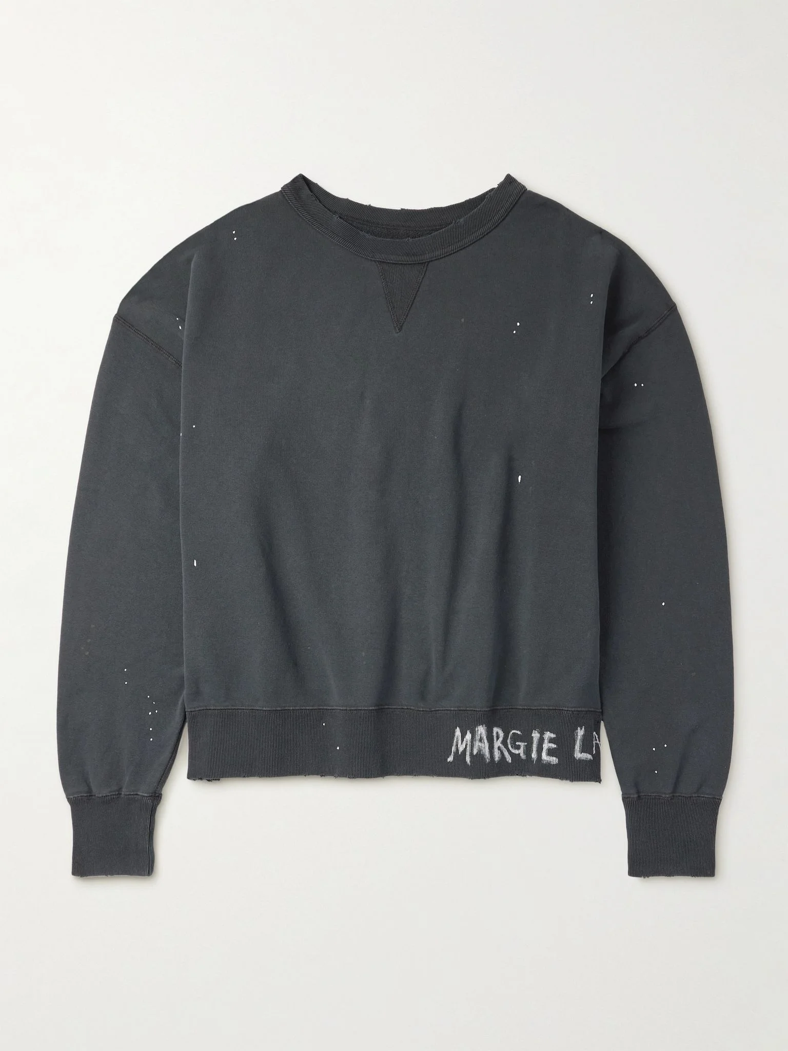 Maison Margiela's sweatshirt is splattered with paint and detailed with graffiti-style 'Margie LA' lettering at the hem. Made from faded cotton-jersey, it has a boxy, cropped shape with dropped shoulder seams and ribbed trims. The label's signature four stitches detail the back. Size & Fit - Those who are above 6'1"/ 185cm may wish to take the next size up - Designed for a loose fit - Dropped shoulder seam - Cropped in length - Mid-weight, slightly stretchy fabric - Model is shown wearing a M - Model measures: chest 36"/ 92cm, height 6'2"/ 188cm Details & Care - Black and white cotton-jersey - 100% cotton - Machine wash