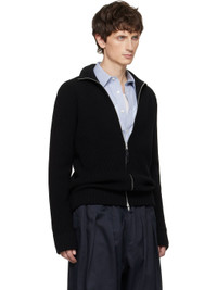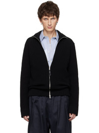 7-gauge rib-knit cotton- and wool-blend jacket. · Stand collar · Leather pull-tab at two-way zip closure · White stitching at back collar Supplier color: Black 76% cotton, 24% wool. Made in Italy 252168M202000