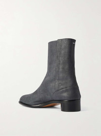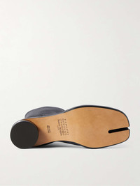 Maison Margiela's 'Tabi' design was introduced in 1989 as part of the house's debut collection and continues to be re-imagined each season. These textured-leather boots feature the iconic split-toe and rest on 3cm cylindrical heels. Hook closures help maintain their structure over time. Size & Fit - Fits true to size. Take your normal size - Narrow at the top of the foot - European sizing Details & Care - Charcoal melange textured-leather (Calf) - Hook fastenings