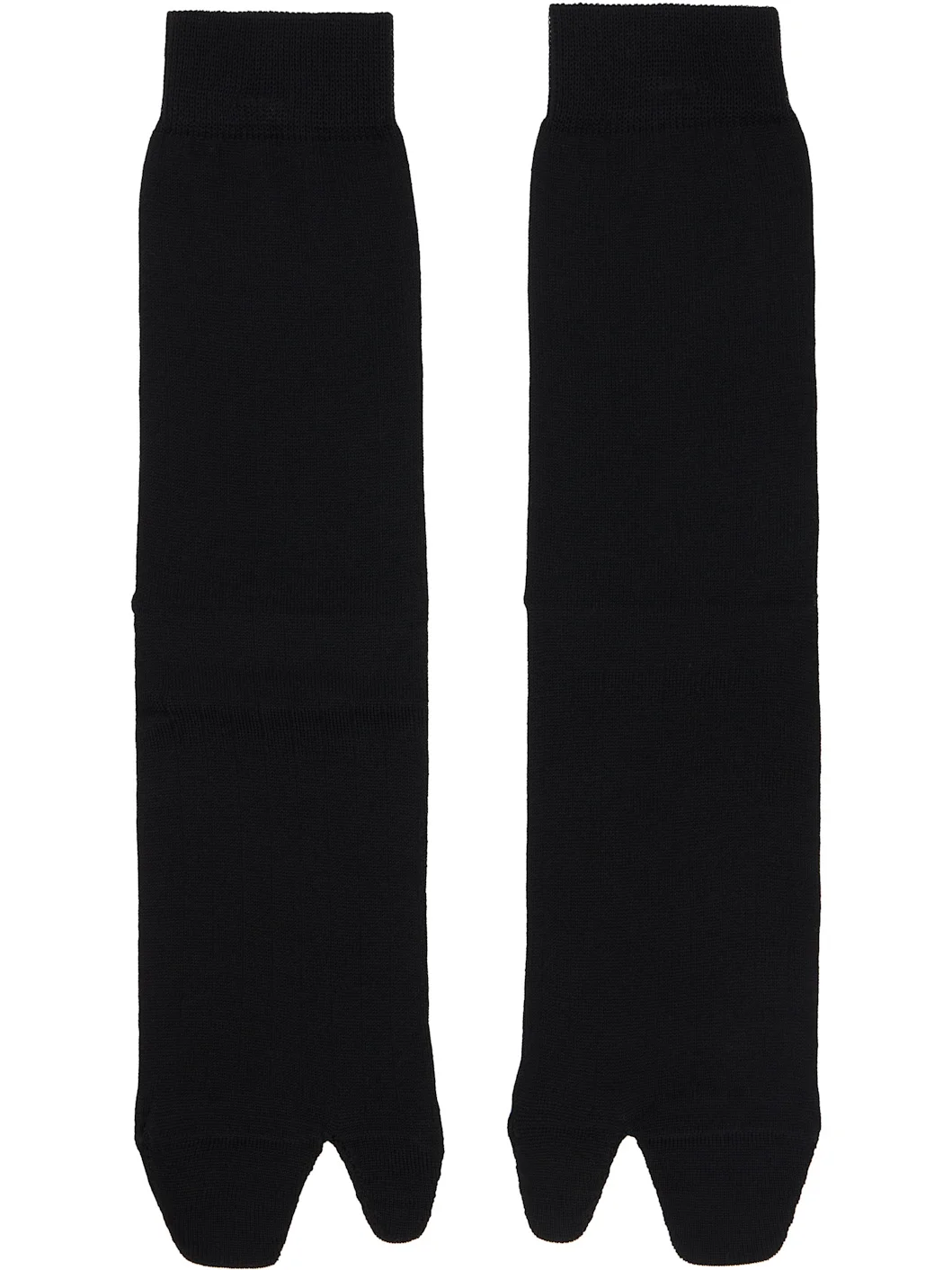 Pair of rib-knit cotton-blend jersey socks. · Calf-high · White stitching at collar · Cleft toe Supplier color: Black 76% cotton, 24% nylon. Made in Italy 261168M220000