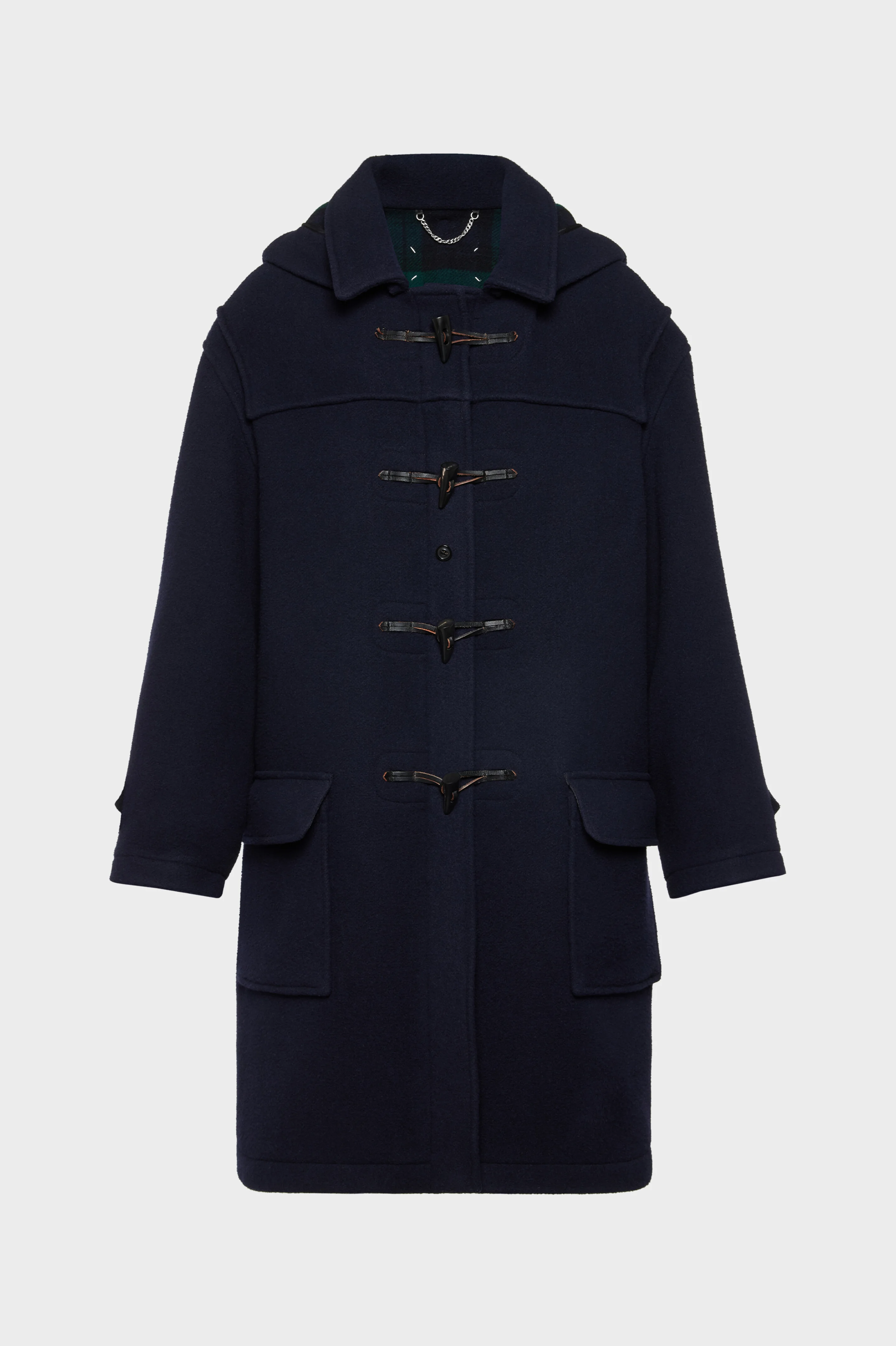 This dual-wear duffle coat is cut from wool with an elongated silhouette, dropped shoulders and a removable hood. Toggle fastenings reference classic outerwear, while deep patch pockets add everyday function. Reversible by design, the piece offers two interpretations of the same form. Maison Margiela’s signature, the four stitches, appear at the back; the opposite of a label. Product Details Item ID S50AA0161M35503961 Primary fabric: 100% wool Lining: 100% viscose-rayon Sleeve lining: 100% viscose-rayon Padding: 100% polyester Duffle coat in wool with toggle fastenings Reversible construction Removable hood Patch pockets at the front Four stitches at the back Made in Italy