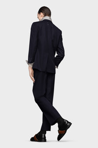 The blazer in British mohair virgin wool features a single-breasted design with chest pocket and two side flap pockets. It has a notched collar, Work-in-progress stitching to the cuffs and a back vent. Maison Margiela's signature, the Four stitches, appear at the back; the opposite of a label. Product Details Item ID S50BN0528S76539510 Composition: 100% virgin wool Sleeve lining: 55% viscose-rayon, 45% cupro Pocket lining: 100% cotton British mohair suit jacket Notch lapel Single-breasted horn button closure Welt chest pocket Flap pockets Basting stitches on cuffs Single vent Four stitches at the back Made in Italy Model is 6'1" tall and wears a size 46.
