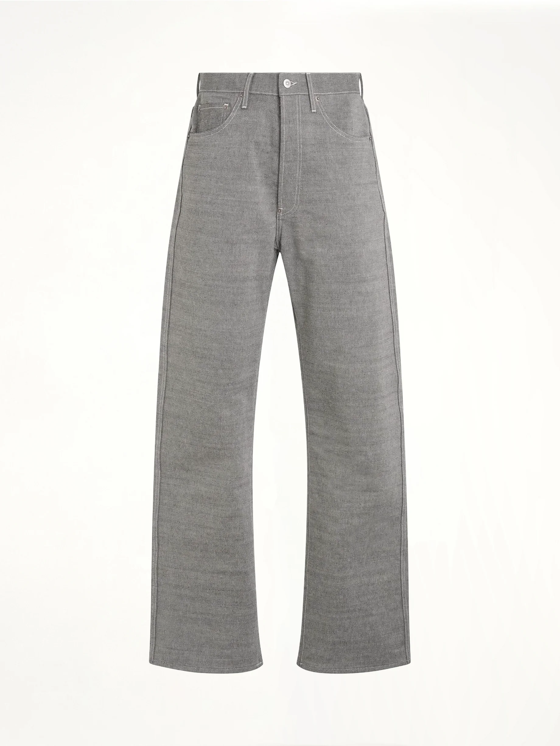 Maison Margiela's Broken Twill 5 Pocket Pants in Caviar is crafted with high-quality broken twill fabric. These pants offer a sleek and sophisticated look with five pockets for added convenience. These pants are both stylish and functional, perfect for any occasion. These pants are a must-have for any fashion-forward individual. - Composition: 100% Cotton - Denim - Decorative buckle detail - High-rise - Belt loops - Concealed fly and button fastening - Classic five pockets - Straight leg SKU: S67LA0039M30006 001F