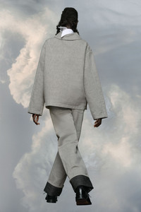 In an oversized fit reflecting the gesture of "mauvais garçons", which inspired the louche attitude of the collection, the broken twill jacket features a shawl collar, contrast buttons and large pockets. Maison Margiela’s signature Four stitches appear at the back; the opposite of a label. Product Details Item ID S67AM0080M30004001F Primary fabric: 100% cotton:Pocket lining: 100% cotton Broken twill jacket Dropped shoulder Button closure Patch pockets Four stitches at the back Oversize fit Made in Italy