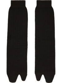 Calf-high wool- and nylon-blend jersey socks. · Signature white stitching at rib knit cuff · Cleft toe Supplier color: Dark brown 78% wool, 22% polyamide. Made in Italy 252168M220006