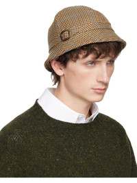 Plain-woven wool hat. · Houndstooth pattern throughout · Cinch strap at side · Signature white stitching at back face · Partial wool melton lining Supplier color: Beige/Brown/Black 100% wool. Made in Italy 252168M140002
