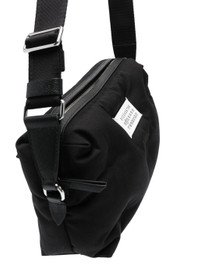 black leather trim padded design logo patch to the front adjustable shoulder strap rear zip-fastening pocket top zip fastening main compartment internal logo stamp internal zip-fastening pocket - depth: 9.0 centimetres, height: 16.0 centimetres, strap: 56.0 centimetres, width: 27.0 centimetres - Color: BLACK - Made in: Italy - Designer Style ID: P1511 SB2WG0010 T8013 Composition and care Outer Composition Calf Leather: 100.0%, Lining Composition Calf Leather: 100.0%, Outer Composition Polyamide: 100.0%, Lining Composition Polyester: 100.0%