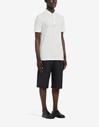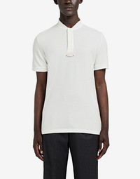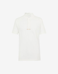 Item details 100% Cotton Piqué Brand logo Polo collar Short sleeves Button closing Side slit hemline