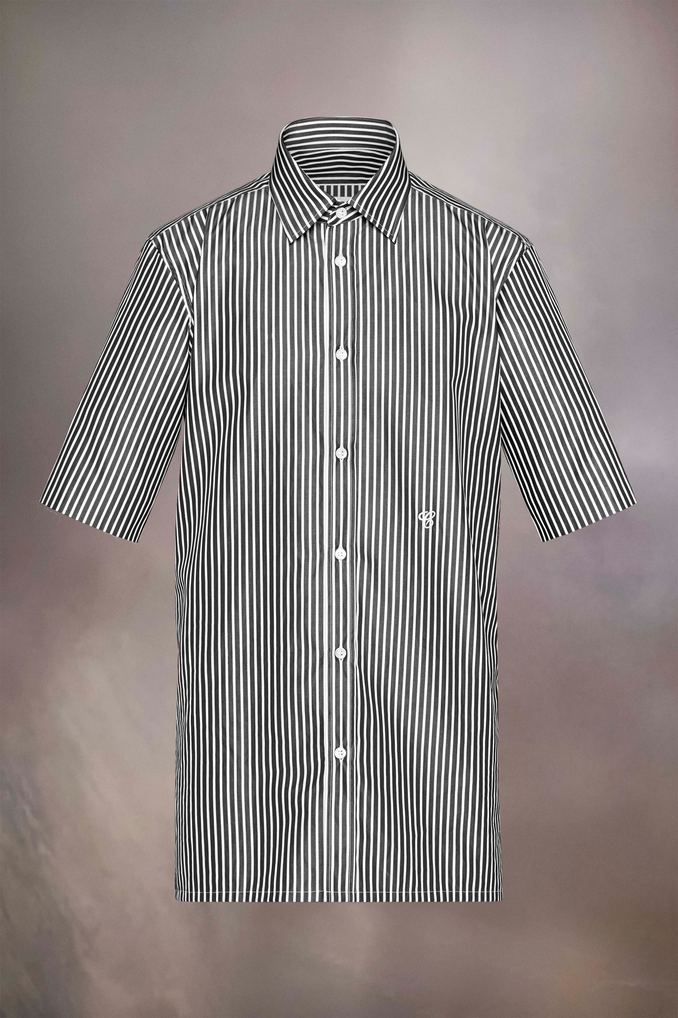 The short-sleeved shirt in striped cotton features an embroidered C, which stands for Count from Cinema Inferno – staged for the 2022 Artisanal Collection. The narrative follows a Southern Gothic tale of ill-fated lovers, presented as a performance piece. Maison Margiela’s signature, the Four stitches, appear at the back; the opposite of a label. Product Details Item ID S50DR0007S78577001F Primary Fabric: 100% Cotton Classic striped cotton shirt Mother of pearl button closure Embroidered C Side slits Four stitches at the back Made in Italy