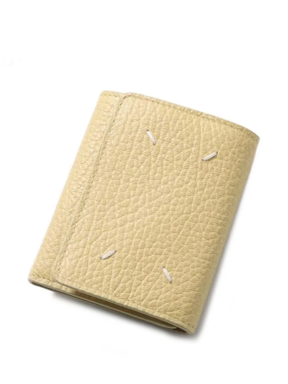 calf-leather tri-fold wallet Highlights - Pale yellow - Grainy leather - Card holders - Zipped section - Four stitches detail Made in Italy Composition Calf Leather 100%