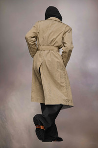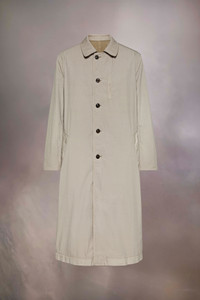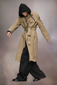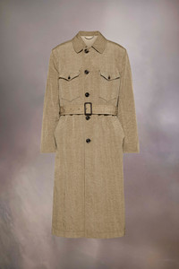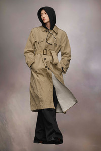 The nylon canvas trench coat has a classic collar and buttoned chest pockets, complementing the button closure. A buckled waist tie allows for an adjustable fit, complete with a back vent. Maison Margiela's signature, the Four stitches, appear at the back; the opposite of a label. Product Details Item ID S50AA0152S53735731 Composition: 100% nylon Lining: 77% cotton, 23% nylon Lightweight nylon canvas trench coat Pointed collar D-ring belt Horn button closure Buttoned patch pockets Backslit Four stitches at the back Made in Italy Model is 6'1" tall and wears a size 46.