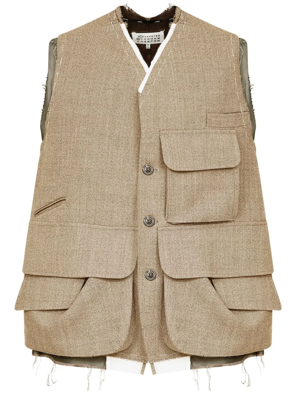 cargo wool vest Highlights - Beige - Wool - Front button fastening - V-neck - Multiple cargo pockets - Sleeveless - Straight hem Made in Italy Composition Wool 100%