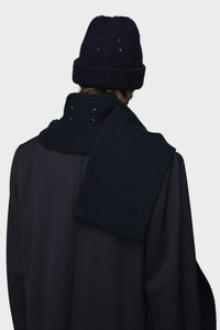 Minimal yet tactile, this ribbed scarf is crafted in pure cashmere for warmth and softness. Its clean edges and graphic proportions highlight the interplay between structure and simplicity. Maison Margiela’s signature, the four stitches, appear in the centre; the opposite of a label. Product Details Item ID S50TE0109M13145524 Primary Fabric: 100% Cashmere Ribbed scarf in pure cashmere Long rectangular silhouette Four stitches at the centre Made in Italy