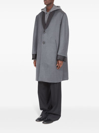 EXPERTLY CRAFTED IN A GREY WOOL TWILL WEAVE, THE CAVALRY LAYERED TWILL COAT FEATURES A UNIQUE LAYERED DESIGN AND SHAWL LAPELS FOR A MODERN AND SOPHISTICATED LOOK. THE CONTRASTING COLLAR AND FRONT BUTTON FASTENING ADD A SUBTLE TOUCH OF ELEGANCE, WHILE THE LONG SLEEVES AND TWO SIDE SLIT POCKETS PROVIDE FUNCTIONALITY. PERFECT FOR ANY OCCASION, THIS COAT EXUDES STYLE AND VERSATILITY.