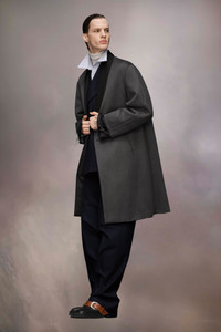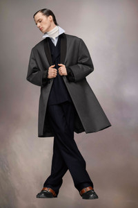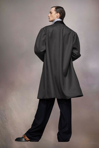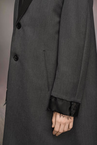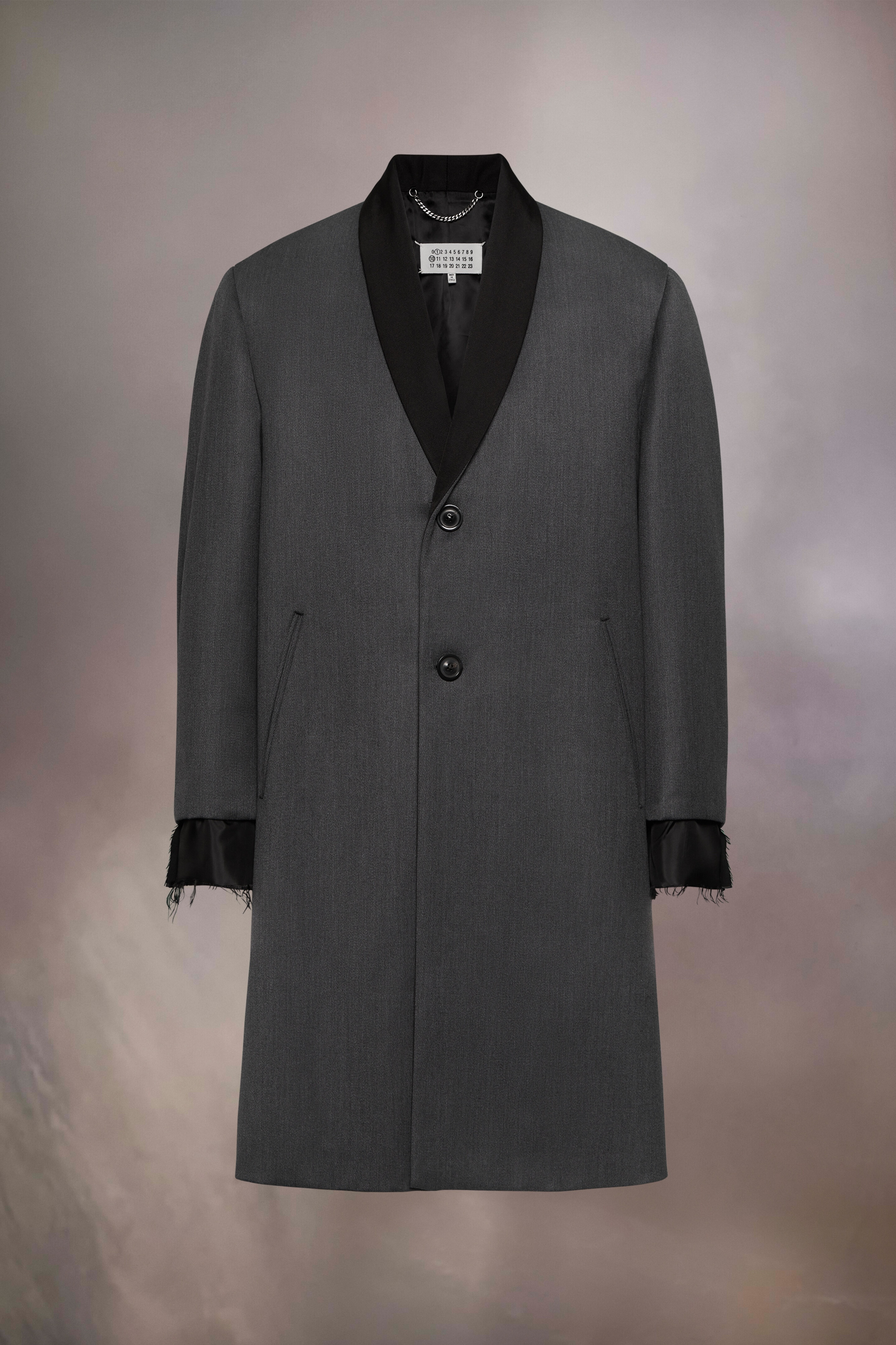 The knee-length coat is crafted from cavalry twill wool, with reinforced epaulettes to enhance the silhouette. The simple single-breasted design is met with side pockets and a smart shawl lapel, contrasted by raw-cut lining at the sleeves showcasing the Maison's Anonymity of the lining concept. Maison Margiela's signature, the Four stitches, appear at the back; the opposite of a label. Product Details Item ID S50AA0151S48842855M Primary fabric: 100% wool Secondary fabric: 63% silk, 37% cotton Lining: 100% viscose-rayon Calvary twill coat Reinforced epaulettes Shawl lapel Single-breasted horn button closure Side pockets Raw-edge lining cuffs Four stitches at the back Made in Italy Model is 6'2" tall and wears a size 46.