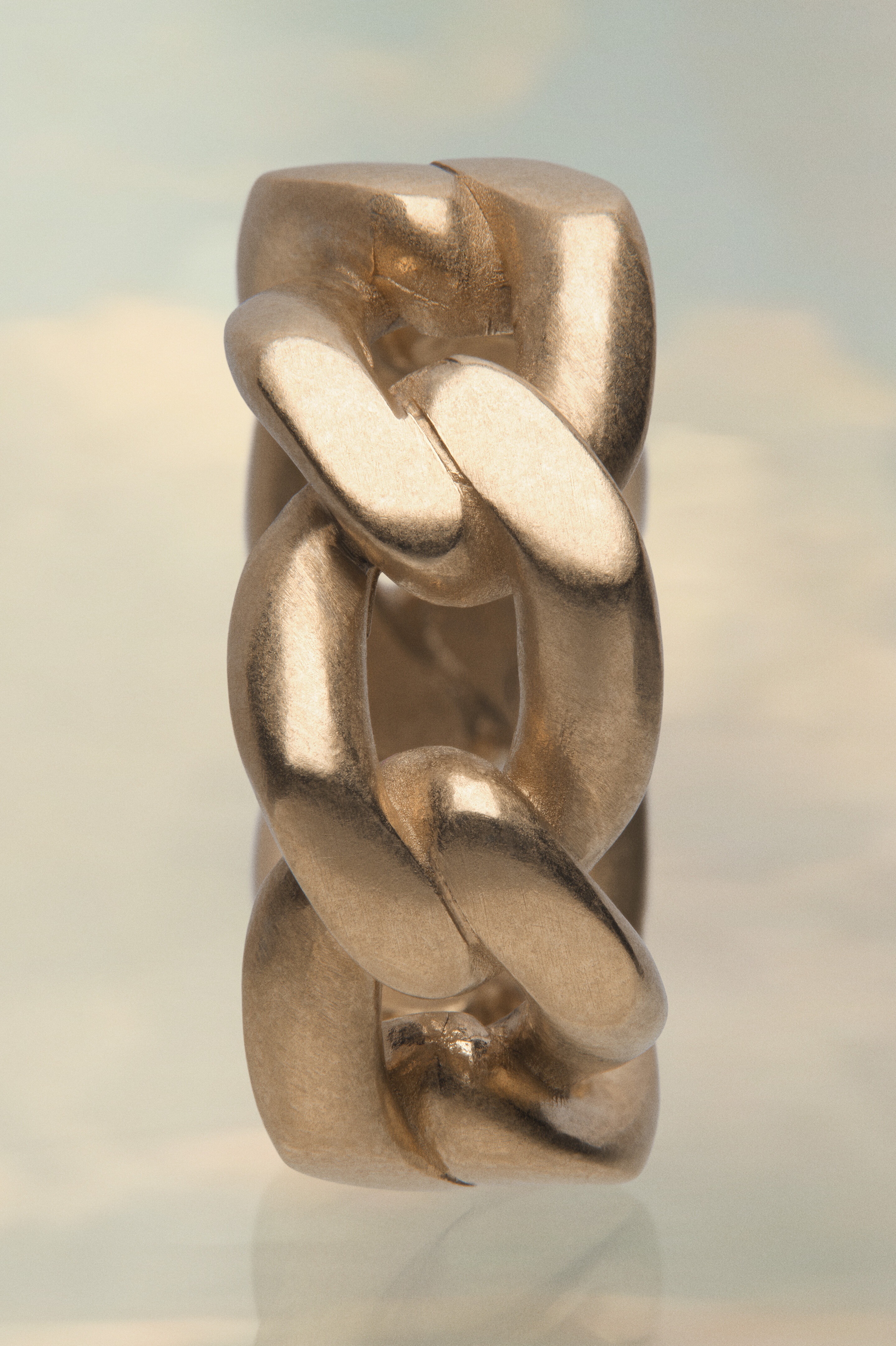 An interlocked chain ring, crafted from semi-polished silver. Product Details Item ID SI8UQ0004SV0130950 Composition: 100% Silver Silver gourmette ring Tone on tone engraved brand logo Avoid salt, chlorine water and aggressive liquid Made in Italy