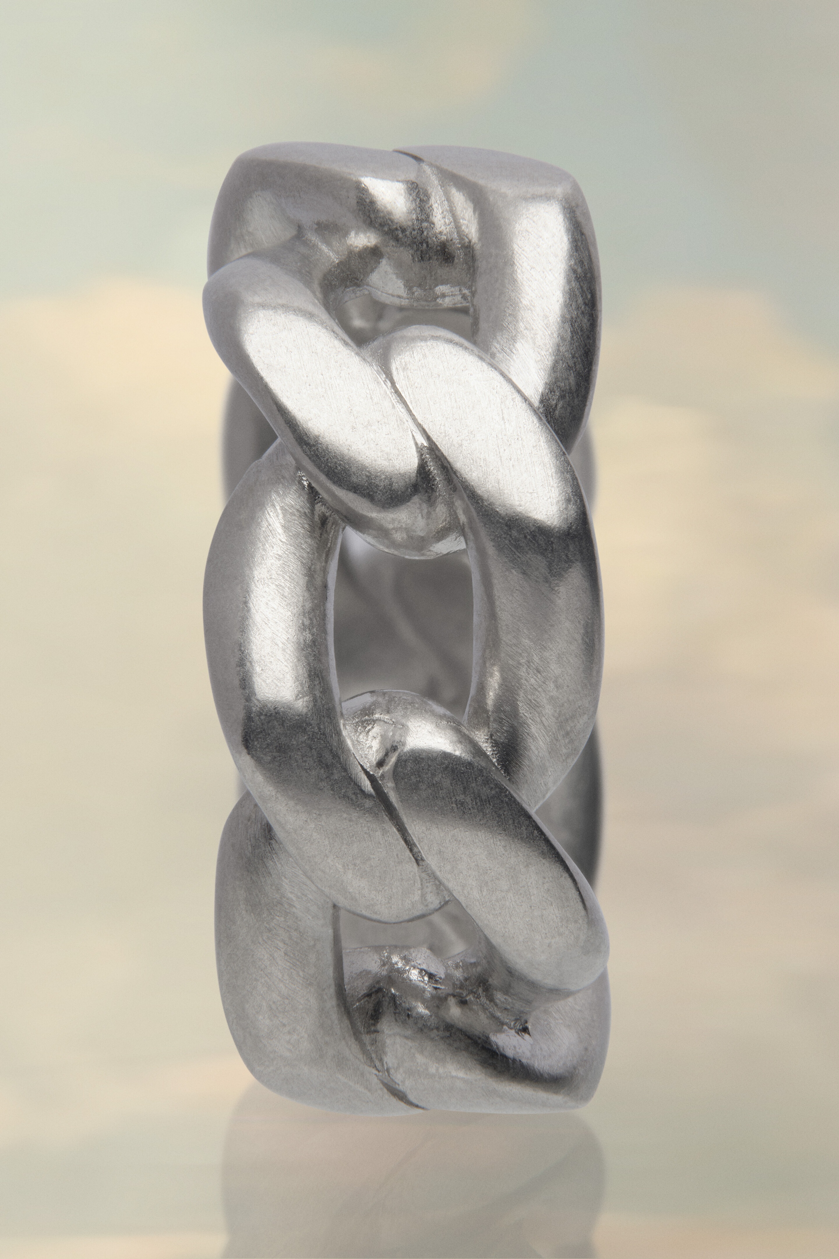 An interlocked chain ring, crafted from semi-polished silver. Product Details Item ID SI8UQ0004SV0130951 Composition: 100% Silver Silver gourmette ring Tone on tone engraved brand logo Avoid salt, chlorine water and aggressive liquid Made in Italy