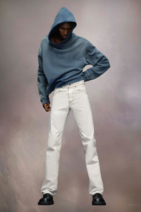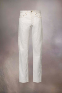 The chalk selvedge jeans are straight-leg with an asymmetric Memory of back pocket and Memory of label. They're finished with topstitch, belt loops and a button and fly fastening. The model is 186cm tall. Model wears size 30.