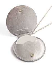 Circle leather wallet Highlights - Silver-tone - Calf leather - Textured finish - Signature four-stitch logo - Foldover top with magnetic fastening - Chain-link detailing Made in Italy Composition Outer: Calf Leather 100%