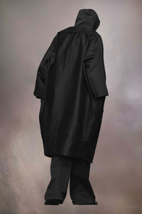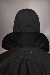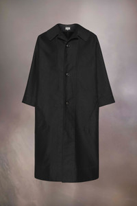 In a voluminous cut with exaggerated shoulders, the coat comes in heavy satin cotton with a collar and button closure. Cropped sleeves contrast the cocoon proportion. Maison Margiela's signature, the Four stitches, appear at the back; the opposite of a label. Product Details Item ID S50AA0154M35095900 Composition: 100% cotton Lining: 100% cotton Heavy cotton satin coat Pointed collar Horn button closure Patch pockets Four stitches at the back Made in Italy Model is 6'1" tall and wears a size 46.