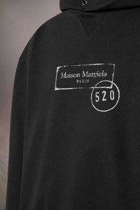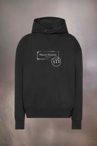 The hooded sweatshirt features a relaxed fit and ribbed trims, elevated by a muted chest motif inspired by archival industrial stamps. Reimagined as a contemporary graphic gesture, it reflects the Maison's conceptual approach. At the back, the four white stitches underscore its signature; the opposite of a label. Product Details Item ID S50GU0247S25505900 Primary Fabric: 100% Cotton Secondary Fabric: 97% Cotton 3% Elastane-Spandex Hooded sweatshirt in cotton Ribbed hem and cuffs Metal eyelets at the hood V-insert at the neckline Maison Margiela Signature at the front Four stitches at the back Made in Italy