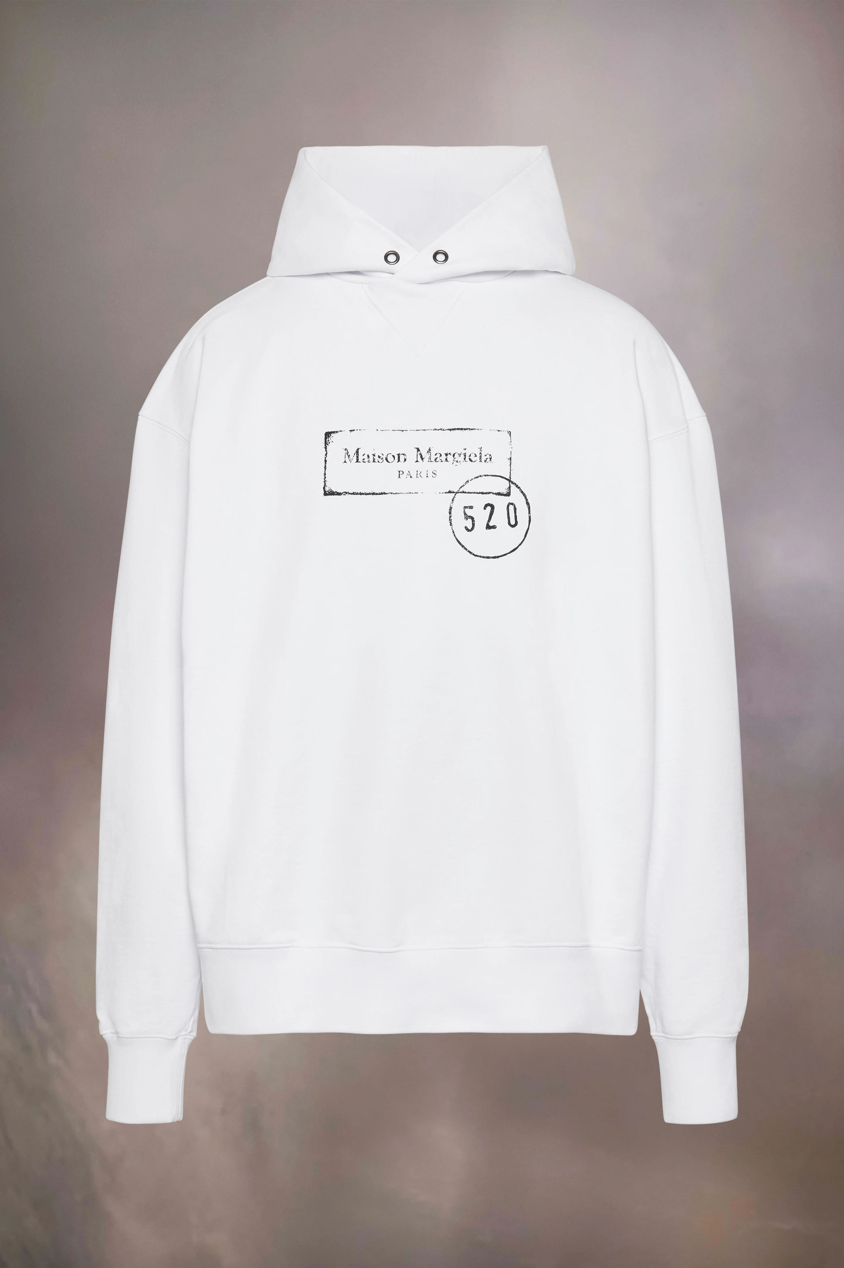 The hooded sweatshirt features a relaxed fit and ribbed trims, elevated by a muted chest motif inspired by archival industrial stamps. Reimagined as a contemporary graphic gesture, it reflects the Maison's conceptual approach. At the back, the four white stitches underscore its signature; the opposite of a label. Product Details Item ID S50GU0247S25505100 Primary Fabric: 100% Cotton Secondary Fabric: 97% Cotton 3% Elastane-Spandex Hooded sweatshirt in cotton Ribbed hem and cuffs Metal eyelets at the hood V-insert at the neckline Maison Margiela Signature at the front Four stitches at the back Made in Italy