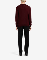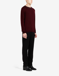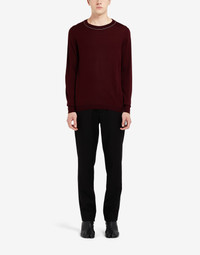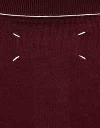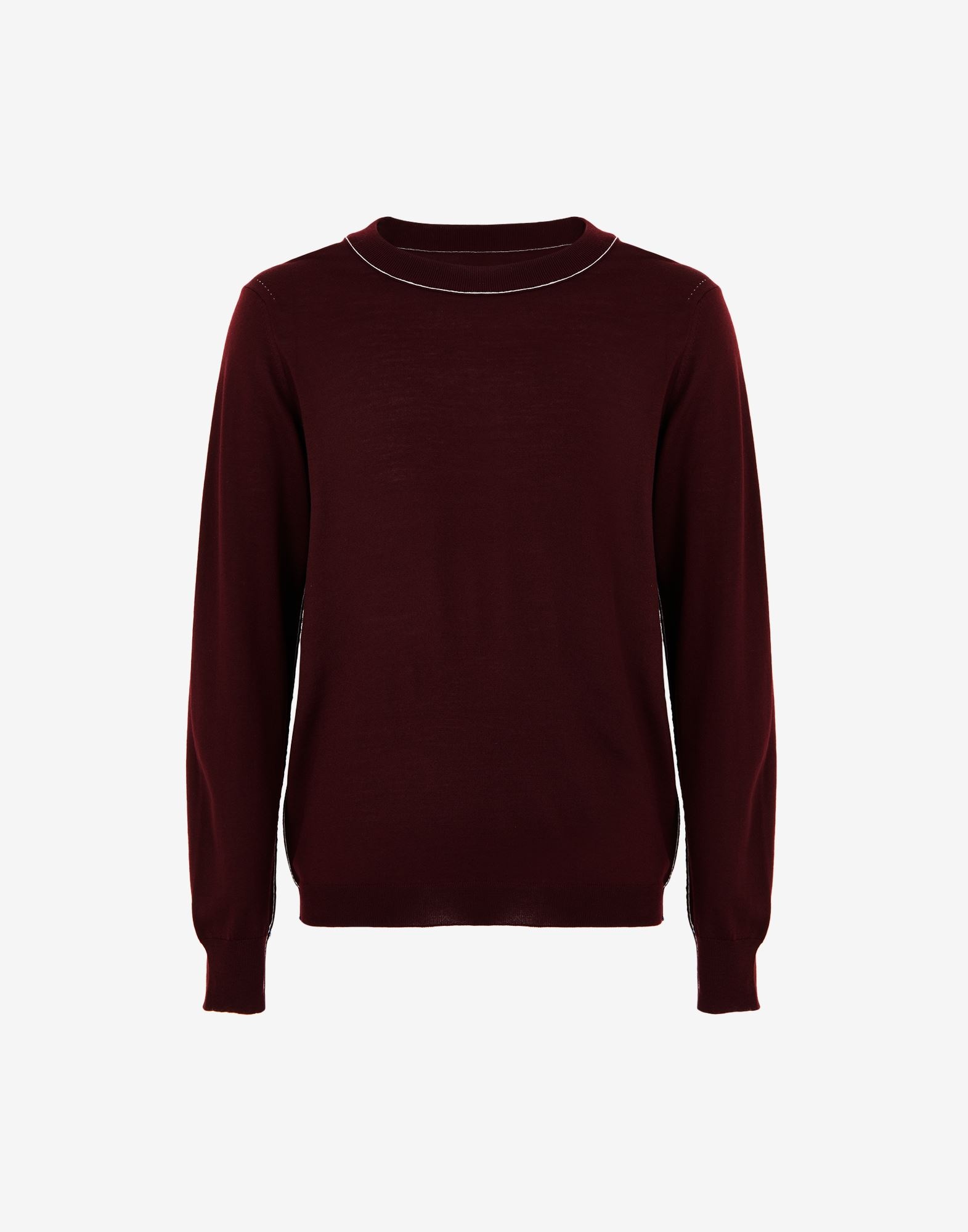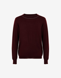 Sweater in ultralight Merino wool – a classic staple revisited with hosiery details such as hand knots, contrast piping and pointelle echoing the work-in-progress design code at the neckline and side seams. It has a single-breast pocket and the Maison's four-stitches moniker adorns the back. Gauge 18. Made in Italy. Item details 98% Wool, 2% Cotton Solid color Long sleeves Round collar Lightweight knit