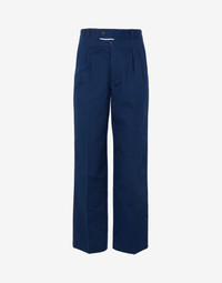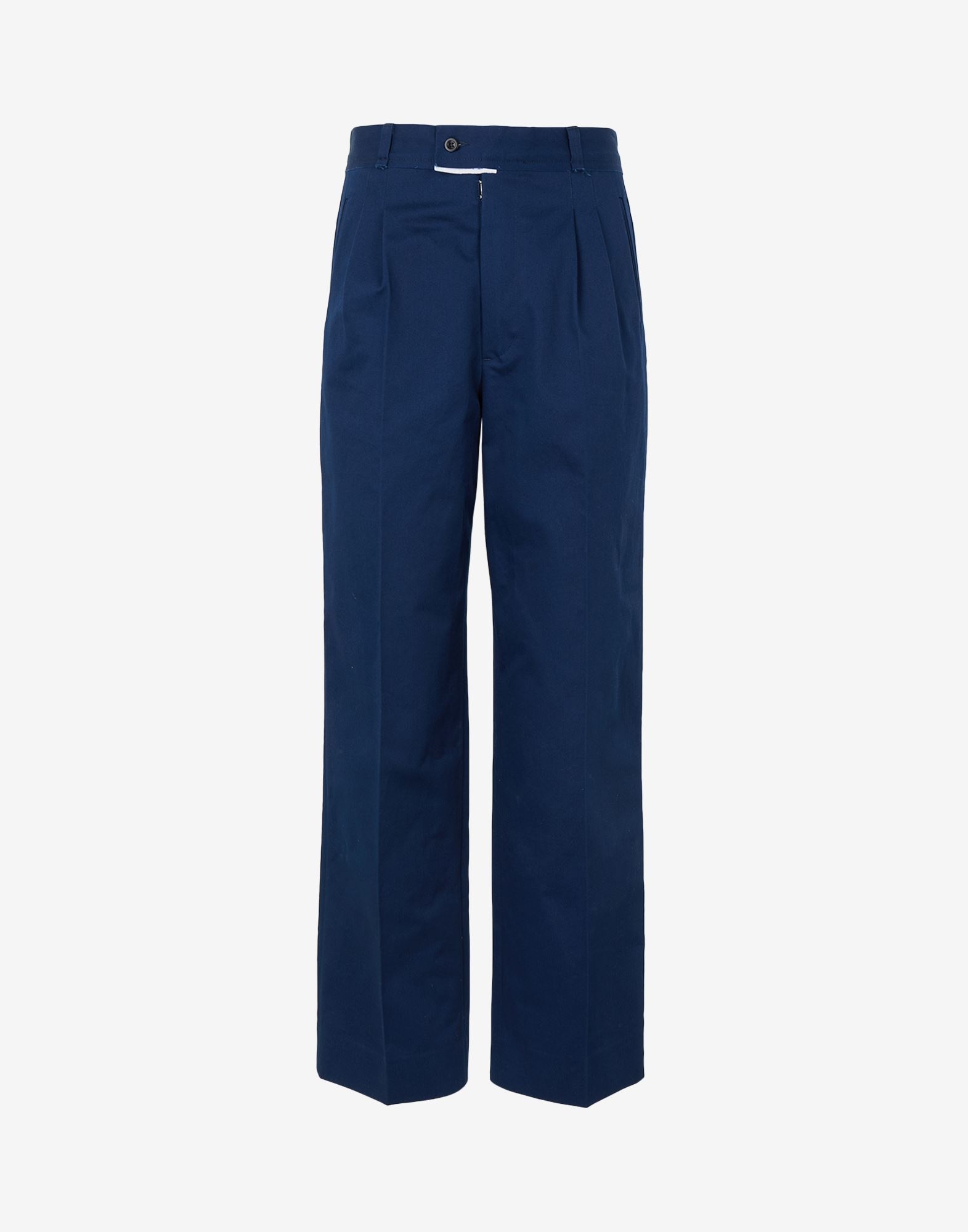 Regular-fit trousers cut from cotton gabardine for a structured aesthetic. The slightly cropped style has classic design elements like front and rear darts, side slit pockets and welt pockets at the back. At the back, four white stitches show the Maison Margiela signature detail: the opposite of a label. Item details 100% Cotton Twill Brand logo Solid color Zipper closure Four pockets